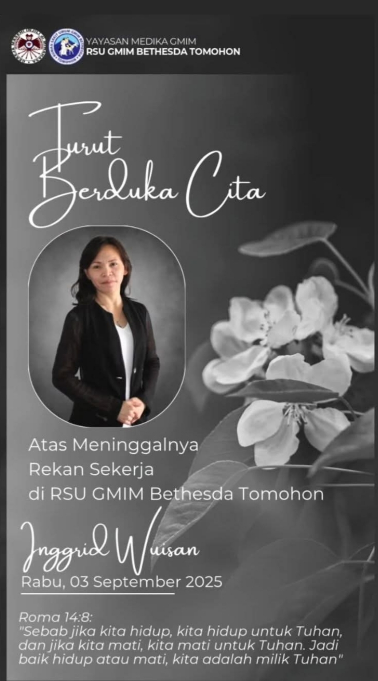 PROMEDIACYBER TOMOHON –Kabar duka menyelimuti keluarga besar RSU GMIM Bethesda Tomohon. Salah satu karyawannya, Inggrid Wuisan, berpulang pada Rabu (3/9/2025) dini hari di RSU GMIM Bethesda Tomohon.