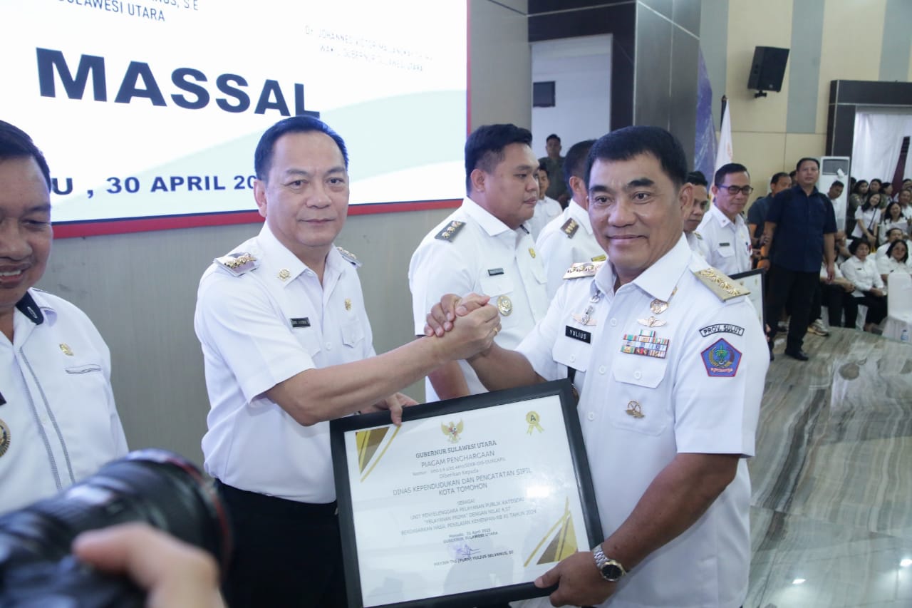 Dimana Kota Tomohon melalui Dinas Kependudukan dan Catatan Sipil Kota Tomohon, mendapatkan Grade A (Grade Tertinggi) sebagai unit penyelenggara pelayanan publik kategori pelayanan prima, berdasarkan hasil penilaian Kementerian Pendayagunaan Aparatur Negara dan Reformasi Birokrasi Republik Indonesia Tahun 2024.